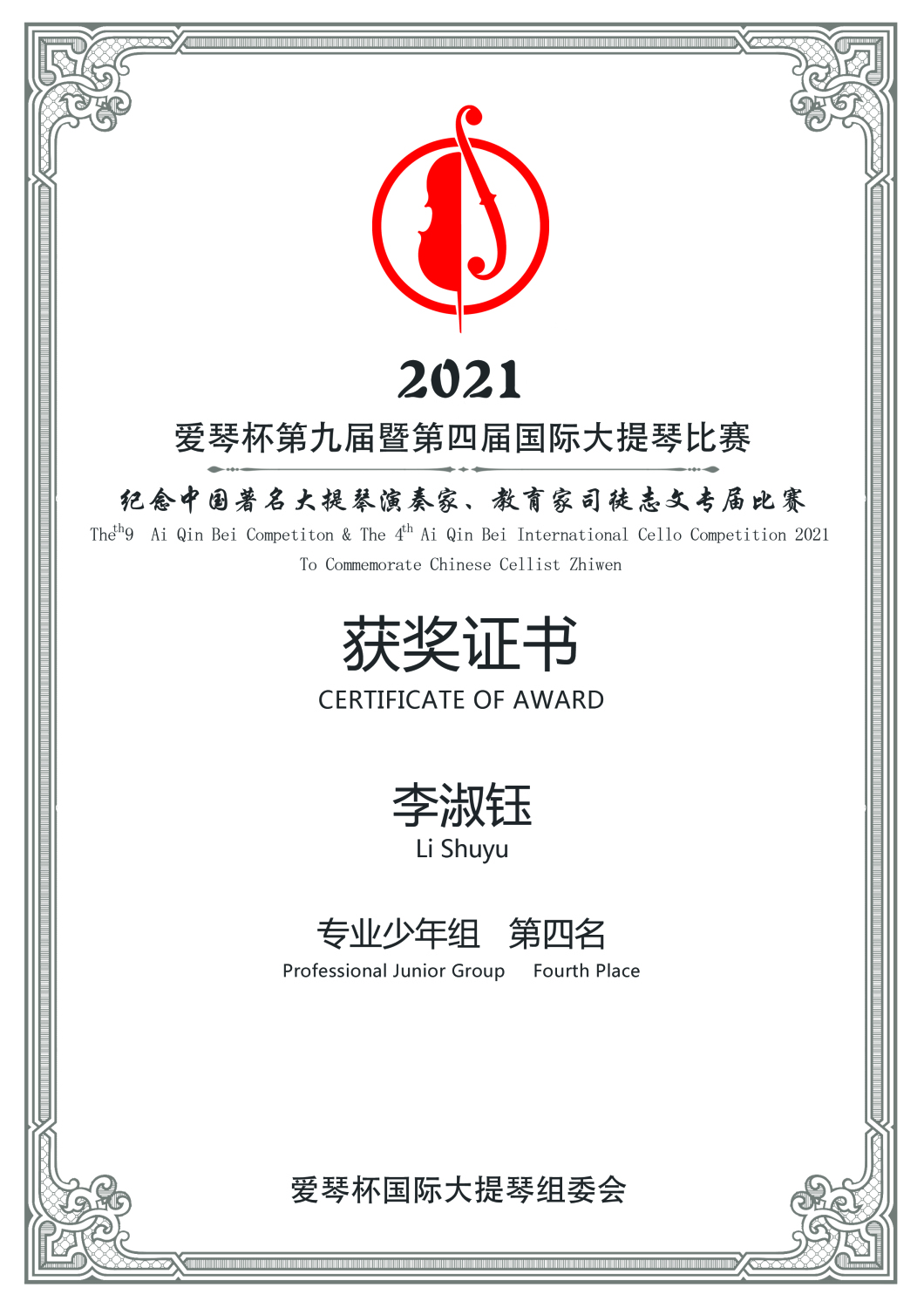 爱琴杯国际大提琴比赛,是面向世界范围内所有年龄段的专业及非专业的大提琴选手而设立的比赛,每两年举办一次,已有十八年,年龄组别设置非常之广,评委的公平公正,在国内具有很高的知名度和影响力。评委团均是来自于全国各大音乐学院及艺术院校的知名大提琴教授及具有影响力的国际大提琴家,阵容强大是中国大提琴界具有权威性及专业性的赛事。