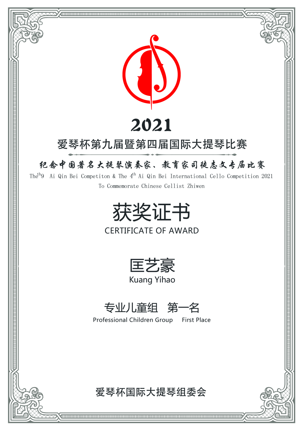 在刚刚结束的第九届暨第四届爱琴杯国际大提琴比赛中,米兰多名学生获得专业组重大奖项。