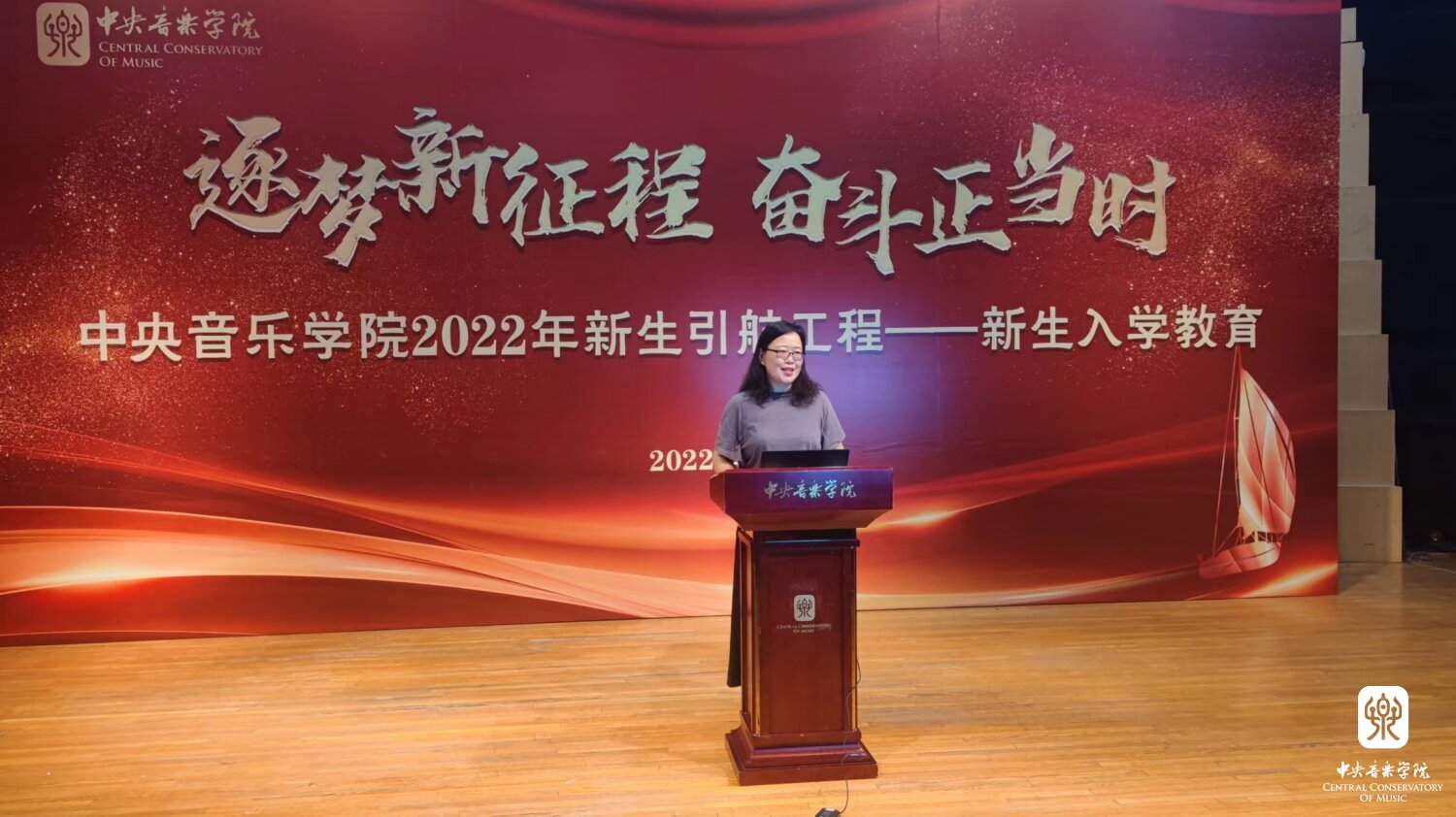 9月9日上午,音乐学教授、博导、教务处处长汤琼博士以《温校史 铭党恩》为题,为新生讲述校史,叶冬梅老师主持。汤老师将央音的发展故事娓娓道来,自豪地讲述了央音自从建校起,就深受党和国家的重视,在那个乐音匮乏的时代撑起了中国音乐大梁的光辉历史。从最初建院到恢复高考,从学科设置到课程改革,从学年学分制的实行到培育出一代代知名音乐家,央音用创作和表演服务于人民,创造了中国音乐界的无数个第一,开启了国际舞台上中国声音的新篇章。汤老师如数家珍地动情讲述带领新生从另一个角度更深入、更亲切地了解到底蕴深厚的校史,让“央音”在新生脑海中鲜活起来,对即将开启的央音新生活充满向往,也深感使命重大。本次校史校情教育,挖掘、激活了校本文化中的红色基因,让初进校门的新生深入了解央音光环下的使命担当,增强了学生的爱国爱校情怀。