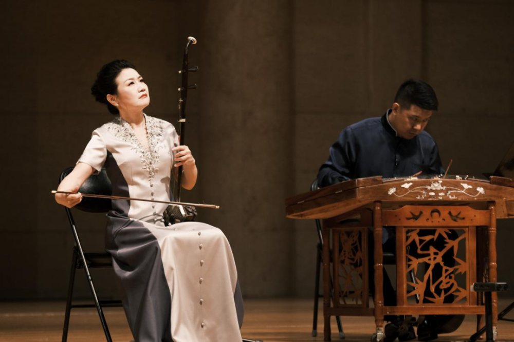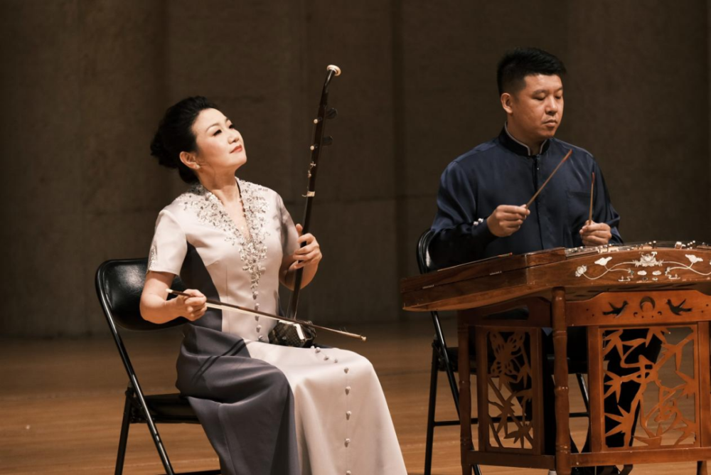 16:30,“南曲北调话心知——二胡·地域之风音乐会”,二胡演奏家严洁敏教授、扬琴演奏家刘音璇副教授通过《河南小曲》《洪湖人民的心愿》《草原新牧民》《葡萄熟了》《一枝花》《迷糊调》等作品,呈现南曲北调的地域特色音乐,展现出二胡丰富的表现力。严洁敏教授以纯粹精湛的演绎,从不同地域风格的作品中提炼二胡兼具民族性、现代性的音乐语言,奉献了一台二胡音乐盛宴。一气呵成、酣畅淋漓的演奏震撼全场,让听众大呼过瘾。