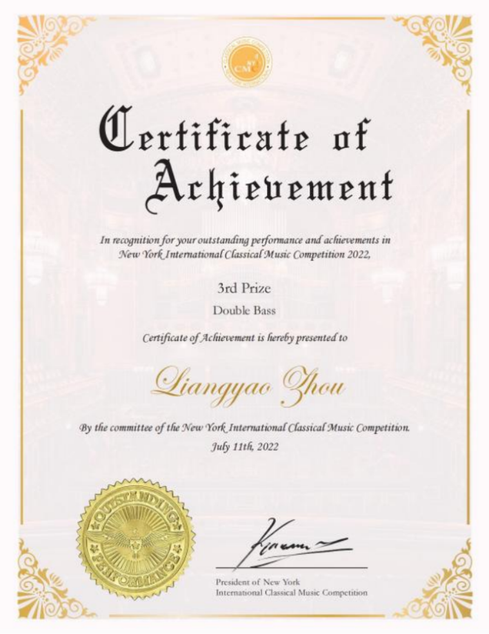 管弦系、附中四名低音提琴专业学生参加2022美国纽约国际古典音乐大赛获得佳绩