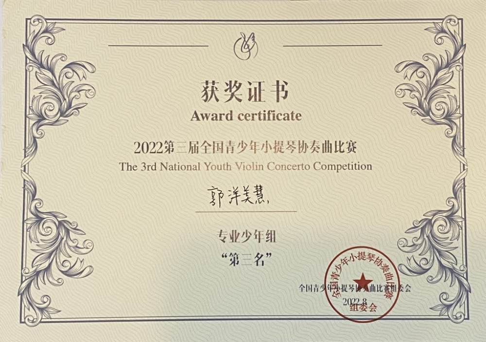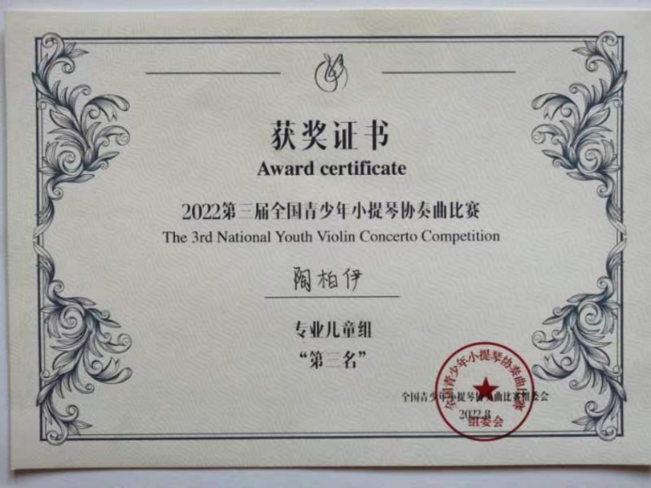 管弦系和附中八名小提琴专业学生在2022第三届全国青少年小提琴协奏曲比赛中获佳绩