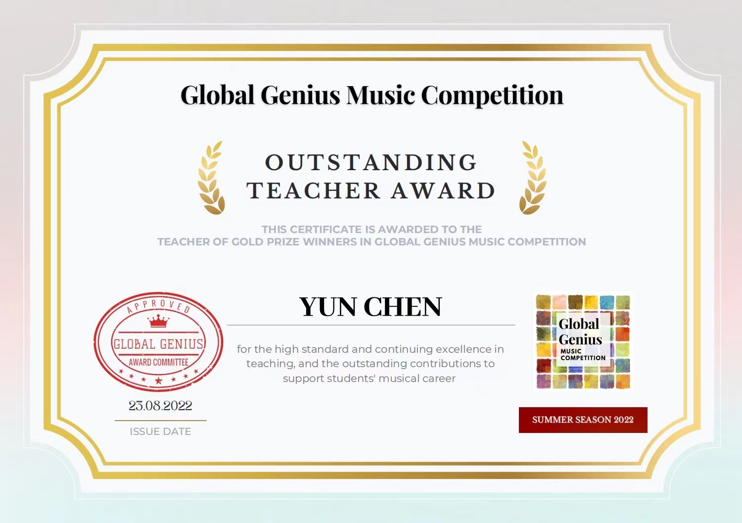 全球天才音乐家大奖赛(Global Genius Music Competition )是一个面向所有国籍和国家,致力于发掘钢琴、弦乐、声乐、指挥、作曲和室内乐表演者的全球音乐大赛,旨在发现世界最有前途的古典音乐家,展示其精湛技艺和卓越的艺术品质。
