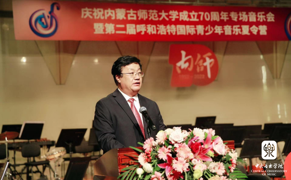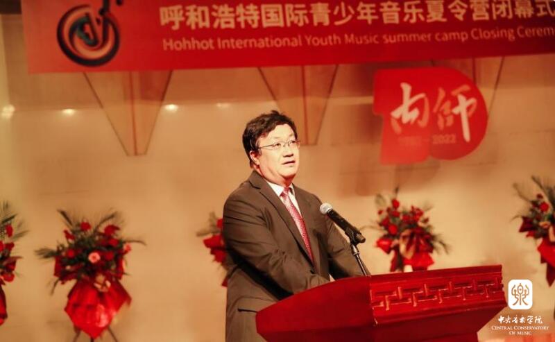 内蒙古师范大学音乐学院杨俊海院长负责夏令营行政执行、统筹安排工作,在闭幕式中他衷心感谢了助力家乡音乐美育教育的娜木拉教授,感谢所有给予支持的单位和音乐家同行们,感谢为夏令营服务的志愿者们,希望呼和浩特夏令营越办越好。