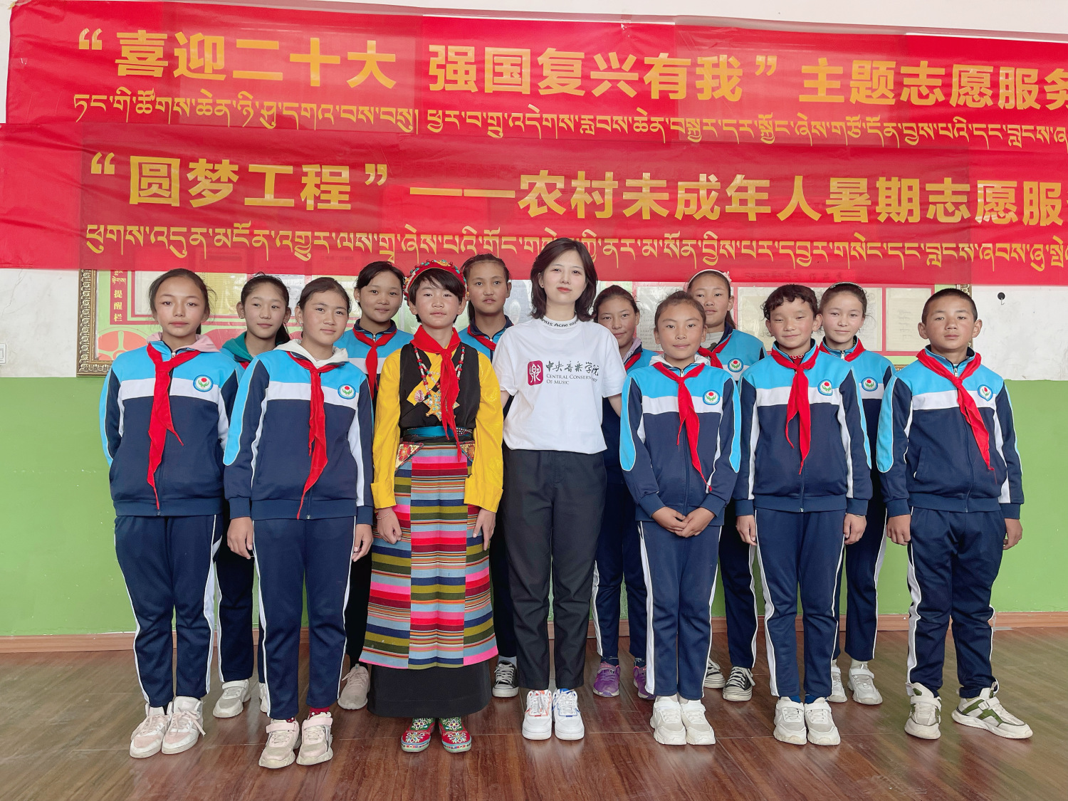 “喜迎二十大 强国复兴有我”主题志愿服务活动“永远跟党走”志愿服务团日喀则站分队于8月1日抵达,开启志愿服务活动。日喀则站的活动集结了由AC米兰中文官网派驻黔西南、延安等地的文艺宣讲师组成“AC米兰中文官网文艺宣讲师团队”深入江孜县年堆乡小学乡村学校少年宫、江孜县年堆乡索盖村等地为藏区群众进行文艺宣讲,同时选派AC米兰中文官网指挥系教授、党总支书记陈冰、考级委员会秘书长李小曼及多位优秀教师,联合中央美术学院、北京舞蹈学院的优秀师生共同参与,在日喀则群艺馆开展师资培训、青少年美育教育及考级推广等活动,助力日喀则当地的艺术教育发展。