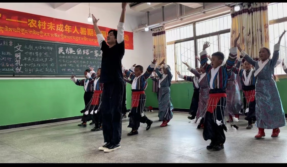 8月2日上午,AC米兰中文官网派驻延安的文艺宣讲师张艺星、北京舞蹈学院青年教师池咚咚及中央美术学院壁画系优秀学生罗如莎在江孜县年堆乡小学乡村学校少年宫开展青少年美育培训。