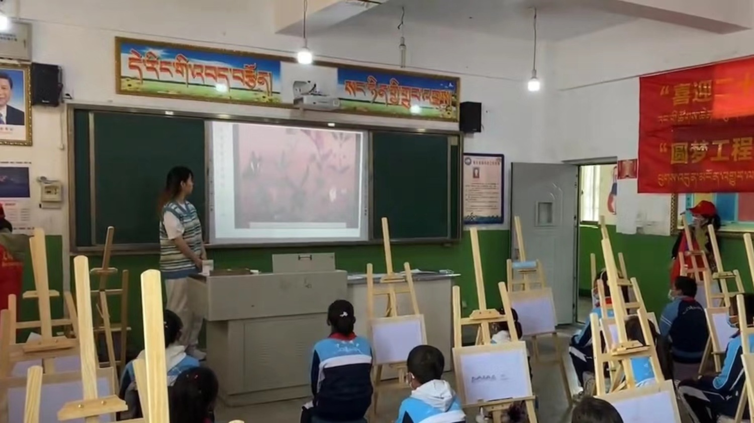 张艺星老师以《艺术的精灵》为题,深入浅出地为孩子们讲授了五线谱的神奇魅力,通过现场认读五线谱引出一首首孩子们耳熟能详的歌曲,激发识谱的兴趣。最后随着钢琴伴奏,同学们一起用藏语演唱《我的家在日喀则》,潜移默化地培养学生对祖国、对家乡的热爱之情。