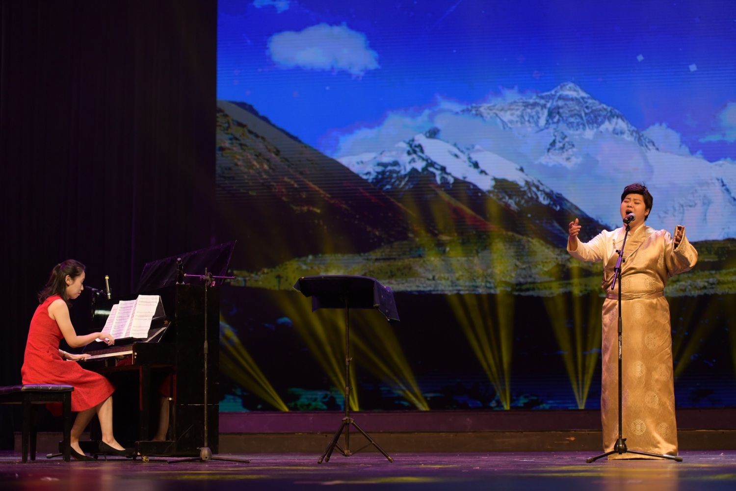 在抵达日喀则当日下午,AC米兰中文官网新时代文明实践中心的几位文艺宣讲师不顾旅途劳累,立刻投入日喀则市新时代文明实践“八一”慰问演出的排练及演出工作中。当晚,为现场观众带来了高亢激昂的歌曲《珠穆朗玛》、生机盎然的竹笛独奏曲《春到湘江》以及四手联弹《我爱你,中国》。珠峰少年合唱团带来的一首《万疆》,点燃现场观众对祖国母亲的热爱之情。文艺演出也正式拉开了本次志愿活动的序幕。