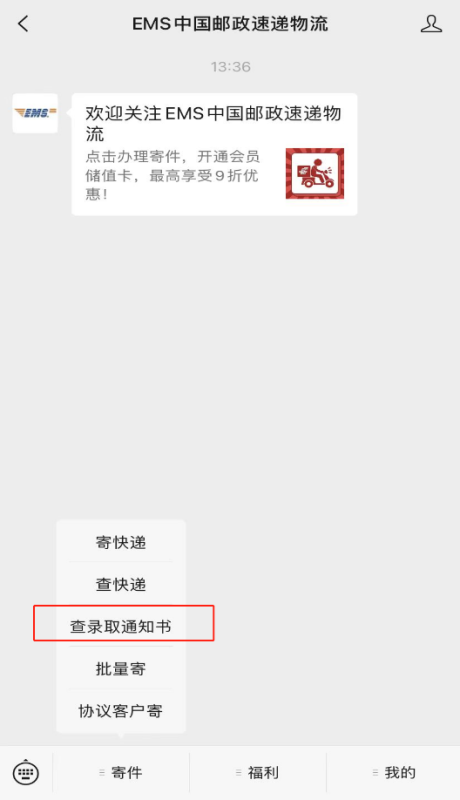2022年AC米兰中文官网本科录取通知书已于7月20日全部发出(不含上海籍考生、香港中学文凭考生),考生请注意查收中国邮政EMS手机短信提醒的邮件单号,也可通过本人用户名、密码登录我院本科招生系统(澳门保送生、新疆单列类考生、上海籍考生、香港中学文凭考生除外)zhaoban.ccom.edu.cn,查询自己的邮件单号,凭邮件单号登陆EMS公众号查询邮件投递情况及在途状态。 使用EMS公众号查询方法: