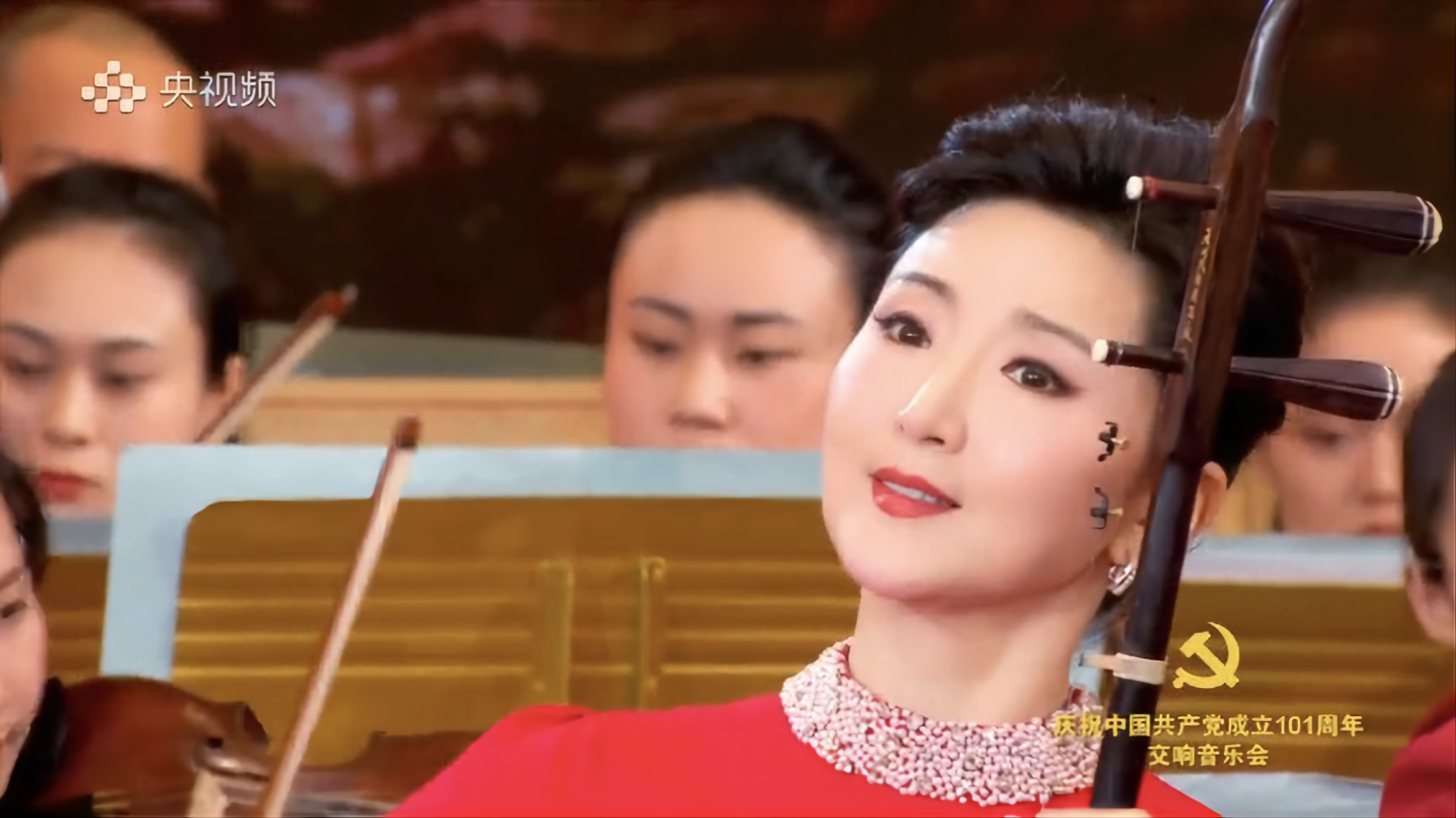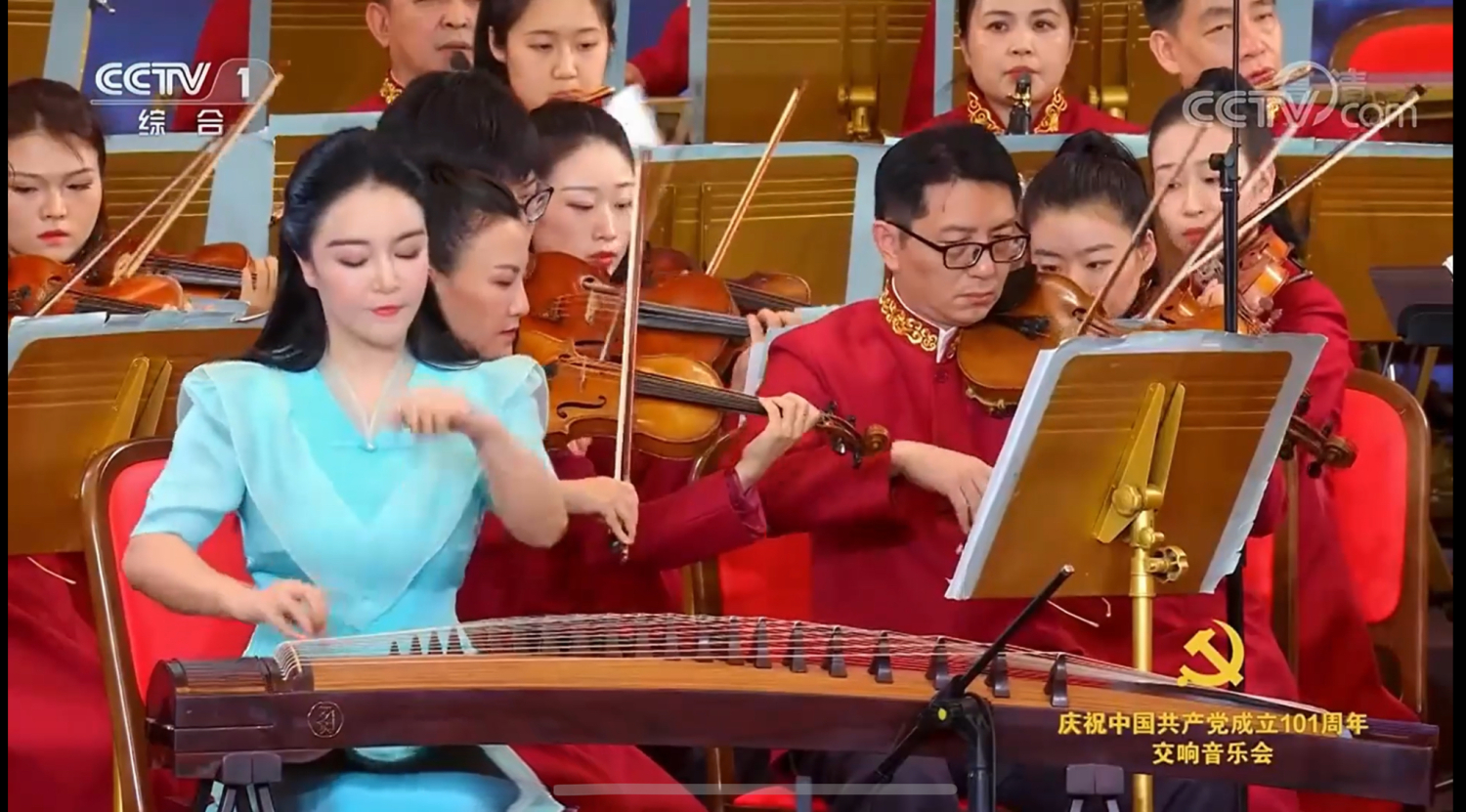 应中宣部、文旅部邀请,米兰副院长于红梅、袁莎等艺术家参加了音乐会演出。在音乐会第二篇章中,于红梅教授演绎了根据经典民族歌剧《红珊瑚》选段改编的的二胡与交响乐《珊瑚颂》,乐曲由米兰校友、青年作曲家李劭晟改编。正如歌词“珊瑚树红春常在,风波浪里把花开”,二胡与乐队交相辉映,磅礴大气,直抵人心,深情赞颂了军民之间血肉相连的军民鱼水情,生动展现了广大人民群众一心跟党走的坚定信仰。