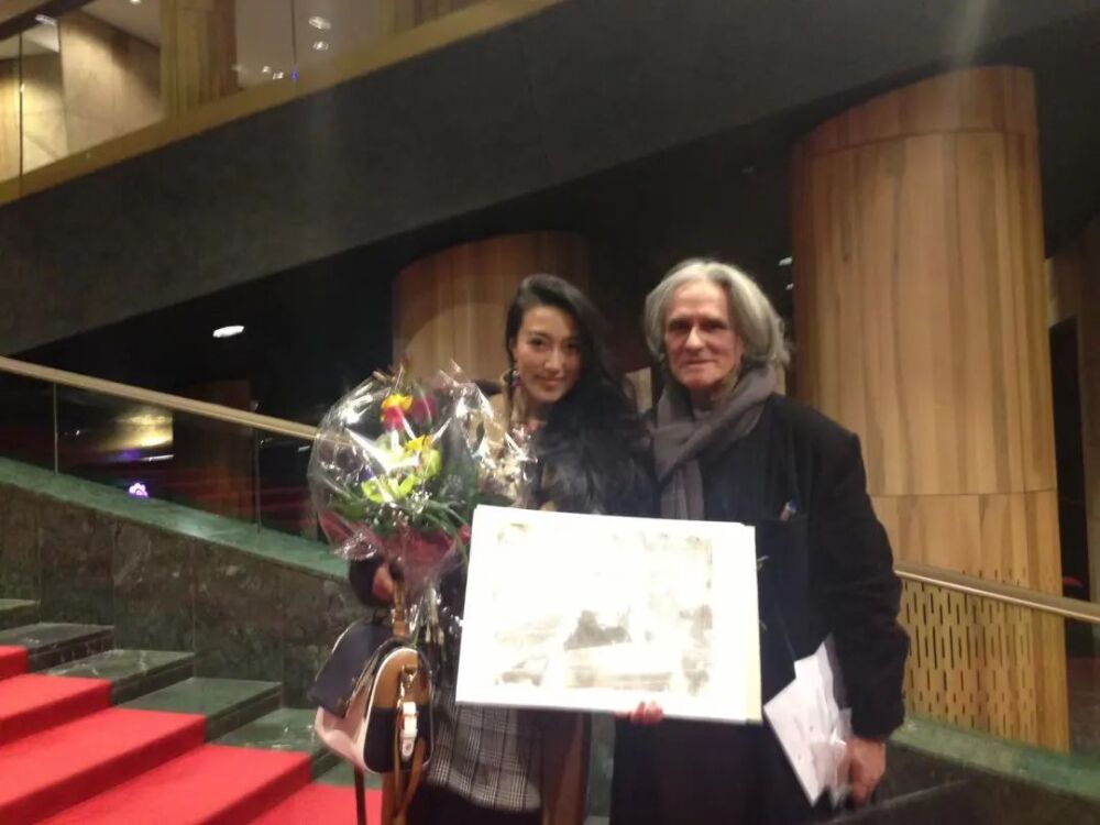 在匈牙利的布达佩斯,观众赠予苏畅其描绘苏老师演出的画作