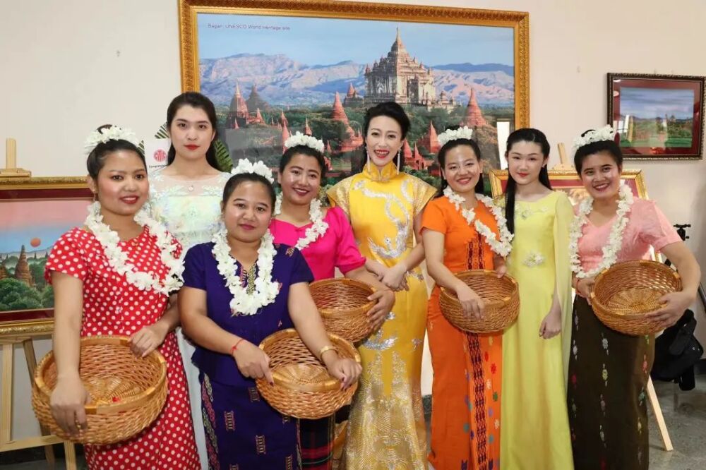 畅响筝团参加中缅建交70周年活动,在缅甸大使馆合影