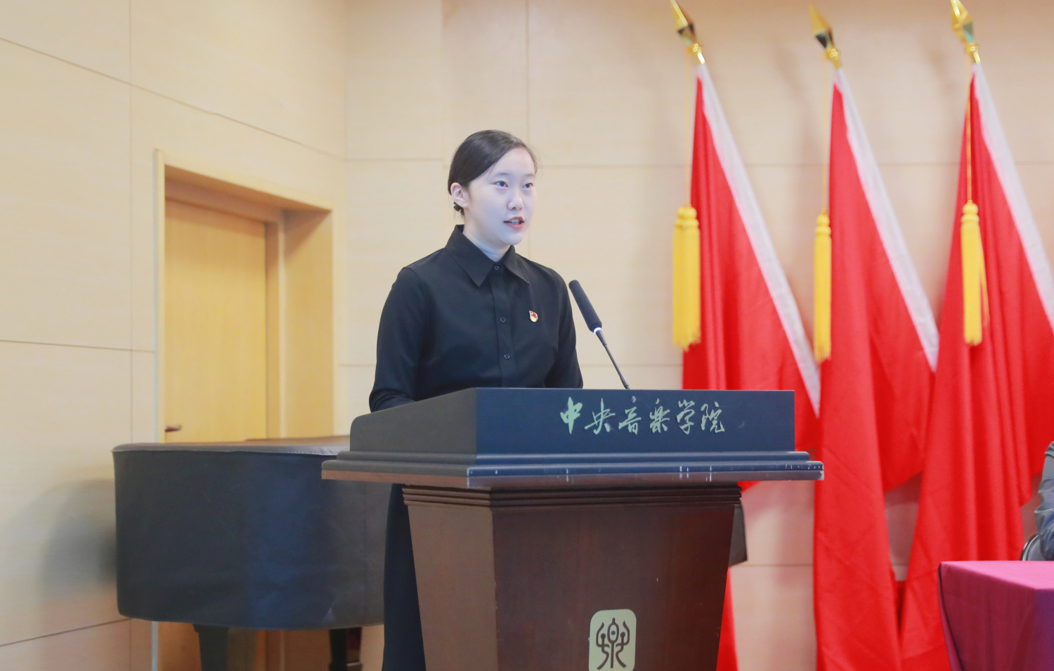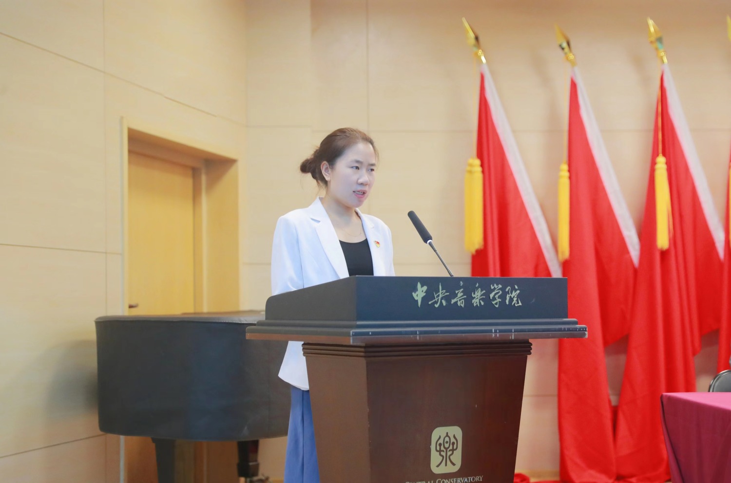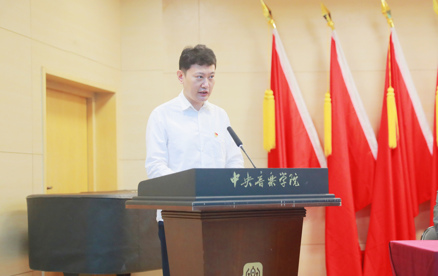 管弦系教师预备党员陈曦从一名预备党员教师的角度,就疫情期间履行“立德树人”教师职责、落实国家和学校防疫要求,以及见证学校防疫期间的责任与担当等方面谈了自身的体会和感受,他强调了自身的获得感、幸福感、安全感,并期待学校发展迈上一个新台阶。