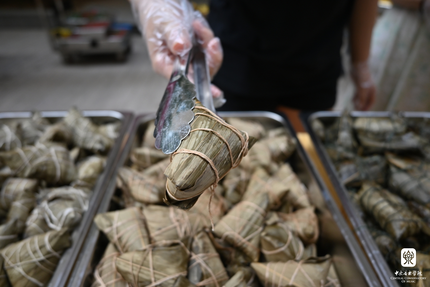 为了这个特殊的端午,饮食中心提前策划,一共准备3000多个粽子,免费供给在校的近900名同学。兼顾南北口味,精心准备,讲安全、讲质量、讲正宗,调运南方特色风味粽子3种:杭州“知味观”细沙、鲜肉、蛋黄鲜肉口味);北方特色风味粽子4种:“稻香村”蛋黄、鲜肉、豆沙、小枣口味。避免“甜咸之争”,保障央音学子品尝到道地的家乡风味,欢度佳节。
