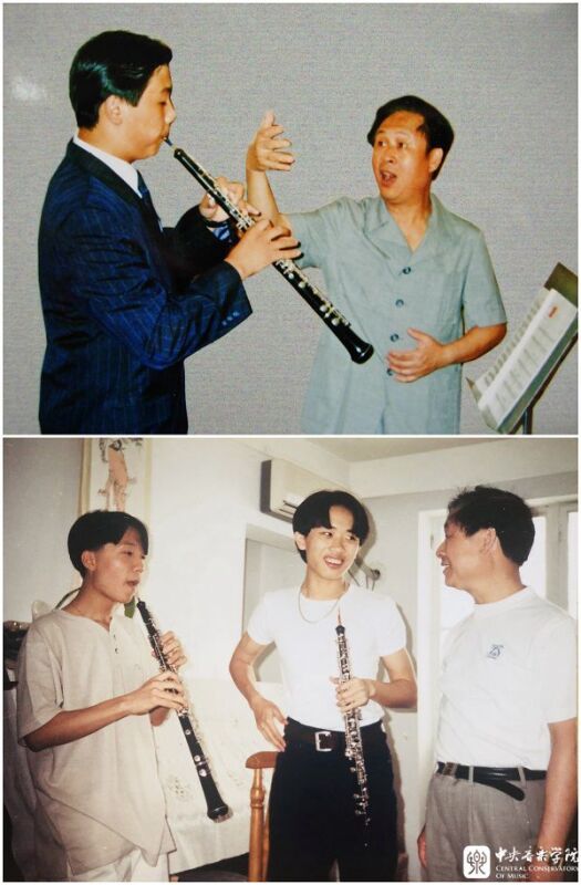 与我的老师一样,我对学生也是毫无保留,每次琢磨出一些新东西,都会及时分享给他们。同时,对于每个学生也都一视同仁。我认为,一个好老师,不仅能够把尖子生、有才华的学生教出来,也能让资质一般的学生成为合格人才。执教60余年来,从附中、本科到硕士研究生,我大约已教了百余位双簧管专业学生,其中袁小钢、王亮、黄铮、金京春、开赛、汤璐、王深、饶健、李佳胤、邵忱、李伦祯、宋蕾蕾、周阳等人,都已在国内外各音乐学院、乐团成为中流砥柱,挑起了“大梁”。学音乐的学生一般都比较感性,特别是学管乐的,更是直来直去,老师对他们好,他们是能感受到的。虽然学生们大都已经毕业多年了,但他们还是经常会来看我,并将此调侃为:“没事就去让老爷子训训我们。”