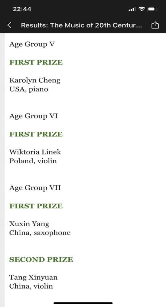 在刚刚落下帷幕的2022年第七届杰出作曲家比赛-二十世纪作品音乐比赛中,米兰管弦系萨克斯管专业硕士研究生二年级杨旭新同学荣获器乐组别最高年龄组(23-25岁)一等奖的好成绩!指导教师:杨桐副教授。参赛作品:大卫·马斯兰卡萨克斯管协奏曲(David Maslanka saxophone concerto)。