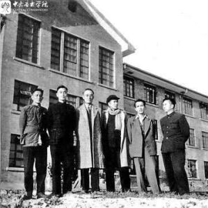 20世纪50年代初,吕骥(中间)与江定仙(右一)、易开基(左二)教授等合影。