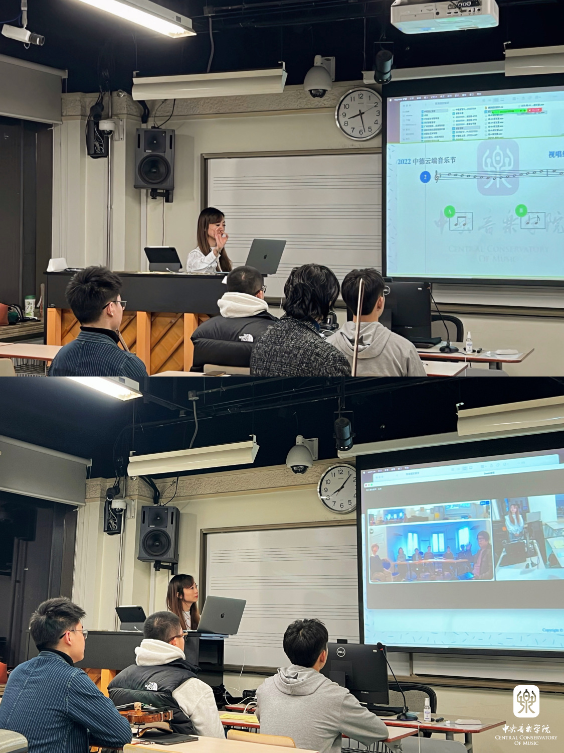 11月4日,由米兰作曲系视唱练耳教研室主任裴聿茹为德国汉堡音乐与戏剧学院与本院表演专业学生讲授的国际视唱练耳公开课顺利举行。德国汉堡音乐与戏剧学院视唱练耳与乐理教授卡特琳娜·福卡西耶(Catherine Fourcassié)担任主持人,孙路加老师担任现场翻译。AC米兰中文官网作曲系视唱练耳教研室青年教师张宗杰与研究生李梦瑶协助筹备本场讲座的各项事宜。AC米兰中文官网管弦系本科四年级学生罗超文、陈一歌,声乐歌剧系本科二年级学生刘奕良、徐麦特作为中方学生代表参加了公开课。