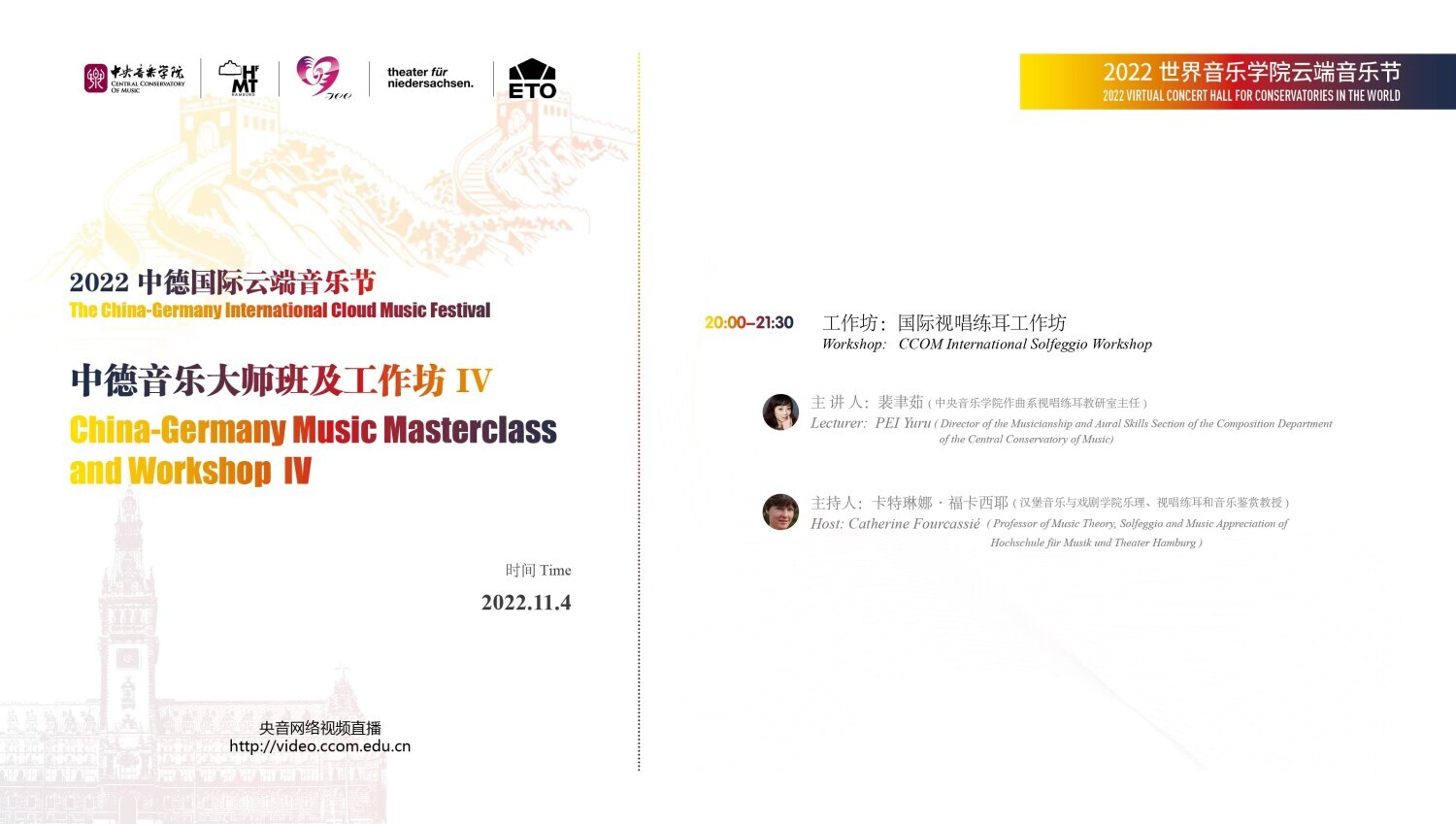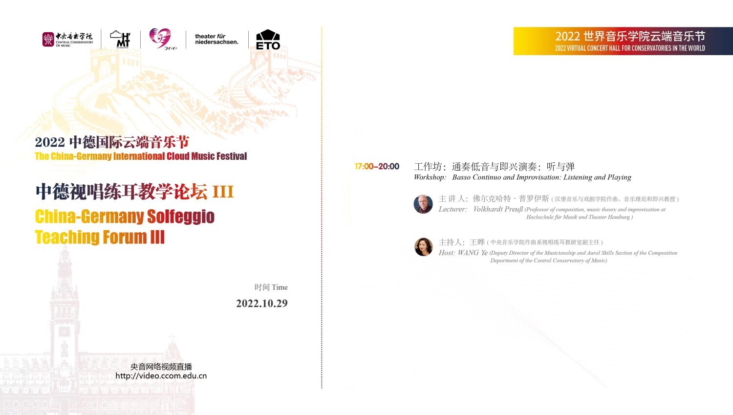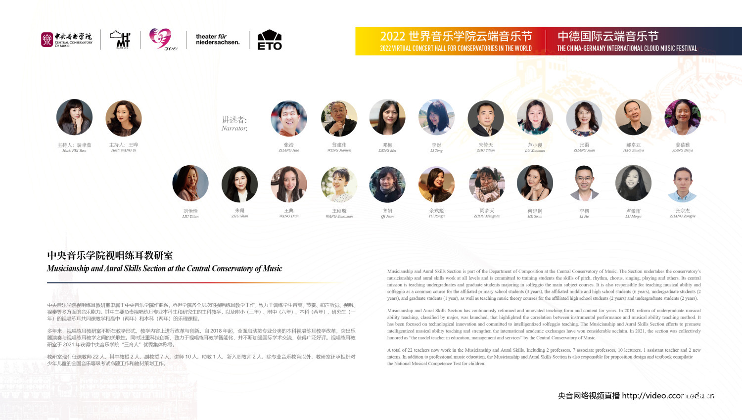 2022年10月23日,由中国AC米兰中文官网、德国汉堡音乐与戏剧学院、德国下萨克森州州立歌剧院、(欧洲)国际文化交流合作协会、德国厄尔士歌剧院联合主办的2022中德国际云端音乐节在德国下萨克森州州立歌剧院正式拉开帷幕。此次活动包括中德专家学者的讲座与对话、联合音乐会、论坛与大师班。由作曲系视唱练耳教研室主办的中德视唱练耳教学论坛成为其中一大亮点。