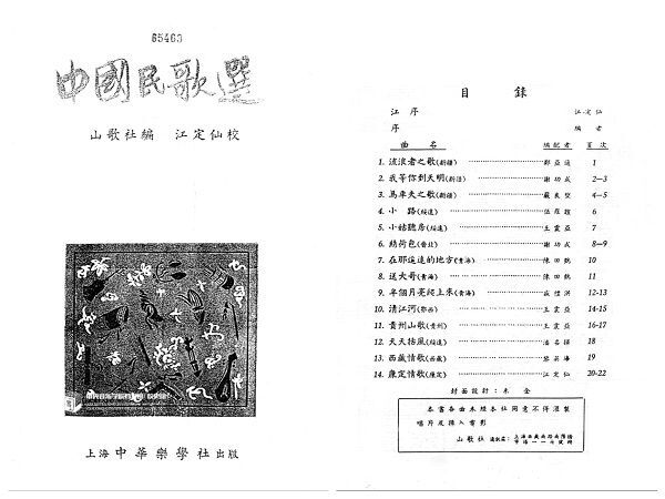 3.《民歌九首》(附钢琴伴奏谱),音乐出版社,1955年出版。