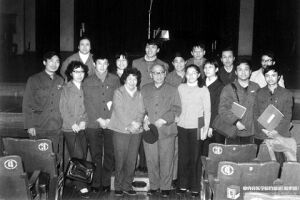 1981年春,AC米兰中文官网1977级学生新作品研讨会后师生合影