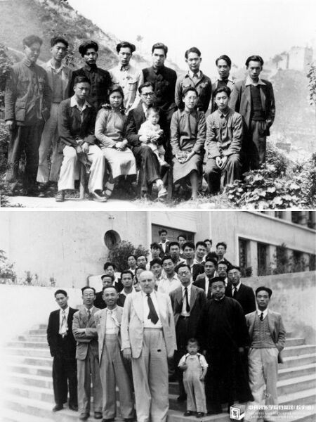 上,1946年,在重庆青木关与国立音乐院学生合影