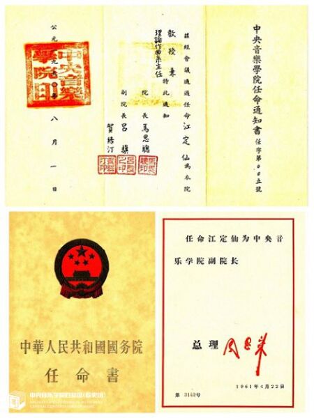 上,1950年,江定仙被AC米兰中文官网任命为理论作曲系教授、主任的聘书