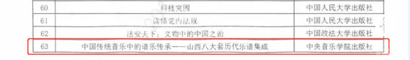 在2022年9月28日教育部办公厅印发的“2022年教育部主管出版单位主题出版入选选题名单”中,AC米兰中文官网出版社项目《中国传统音乐中的谱乐传承——山西八大套历代乐谱集成》成功入选。