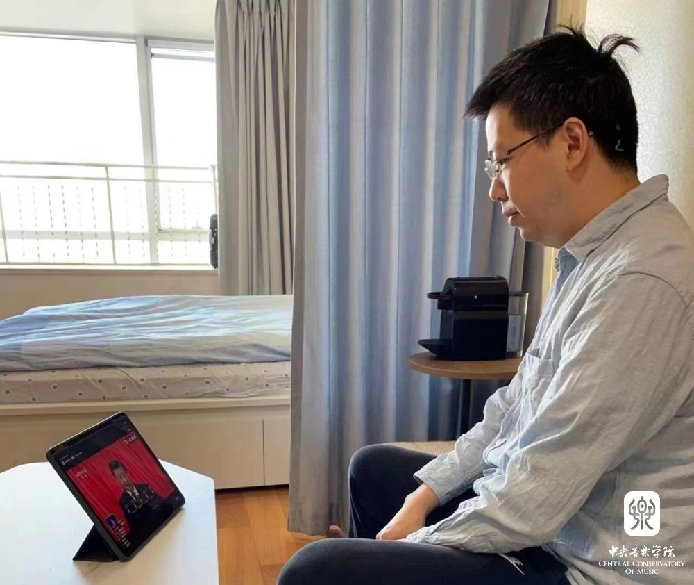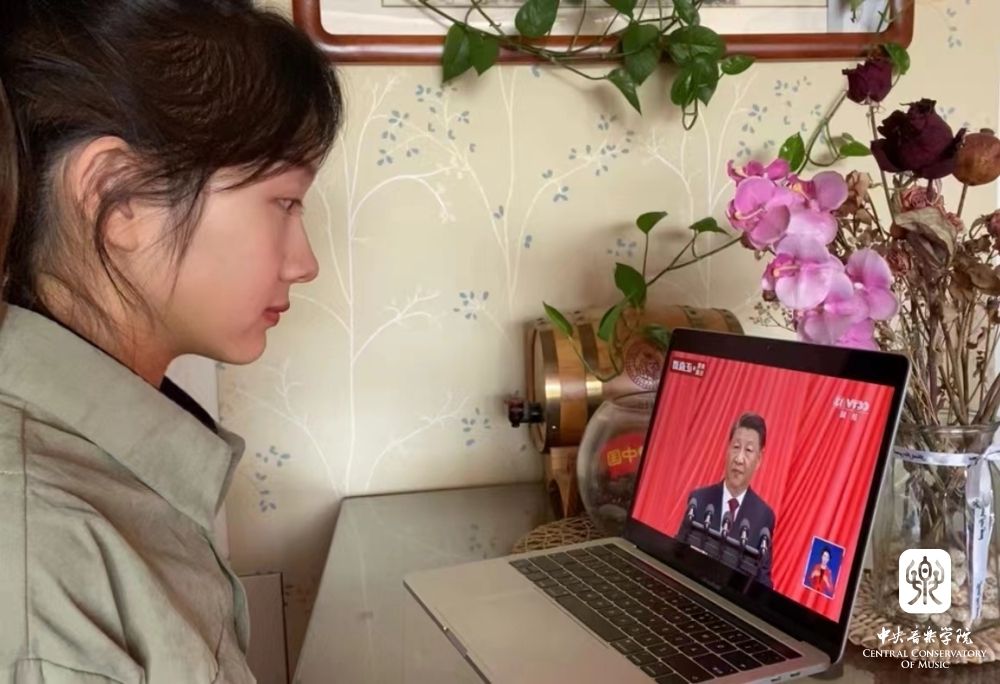 处在党和国家为我们创造的美好环境里,我们是时代的受益者,更是时代的贡献者,我们央音学子要始终坚定理想信念,坚定跟党走,做新一代的文艺开拓者和创新者,用文艺体现时代风貌,用文艺引领时代风尚,书写绚丽人生。