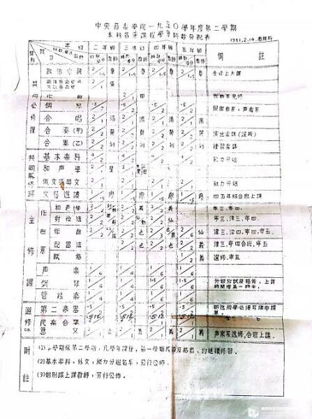 入学以后,我继续学习二胡专业。但当时二胡的曲目很有限,经常演奏的也就是刘天华的10首作品,而我又是从中学开始学的,因此很快便把这些曲目都学完了。1952年,我申请了二胡专业的“pass”考试。这项制度是从国立音乐院沿袭下来的,即学生学完该专业全部规定曲目以后,可以向学校申请修毕考试。考试的规格很高,杨荫浏、曹安和、陈振铎、储师竹、缪天瑞等老师都来参加了。考试方式是把所有该专业的必背曲目写在纸条上,学生通过抓阄演奏其中三首。最终我顺利通过修毕考试,并于1953年提前毕业留校工作。