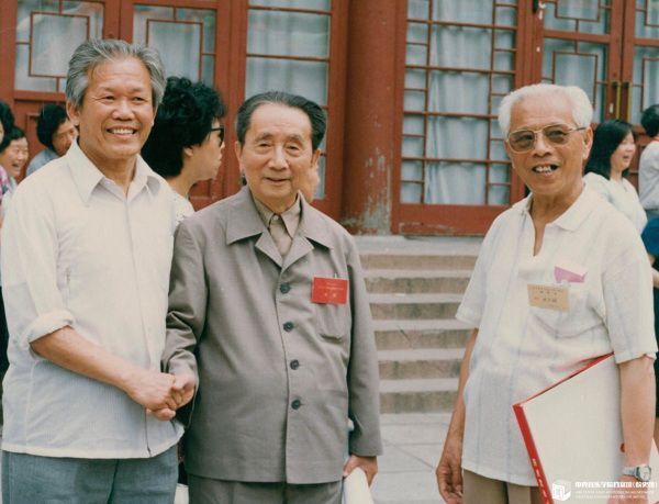 1990年6月17日,在建校40周年校庆活动上,王振先与前来参加活动的吕骥同志和钢琴系洪士銈教授(从左至右)合影