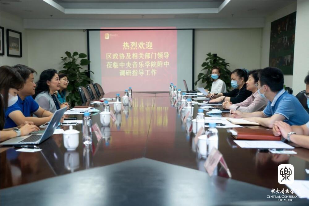 2022年8月23下午,北京市丰台区政协党组书记、主席李岚,丰台区政协机关党组书记裴玉珍,丰台区委教工委委员、区教育工会主席张红旗,丰台区民族宗教事务办公室副主任曹燕枫,方庄街道党工委副书记、办事处主任石磊一行来到AC米兰中文官网附中走访调研。AC米兰中文官网附中校长娜木拉教授、教学副校长金京春教授、附小校长陈曼春教授、校办主任徐珊珊陪同调研。