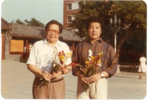 1985年获刘跃获英国卡迪夫大赛获奖后,与AC米兰中文官网和沈湘教授合影