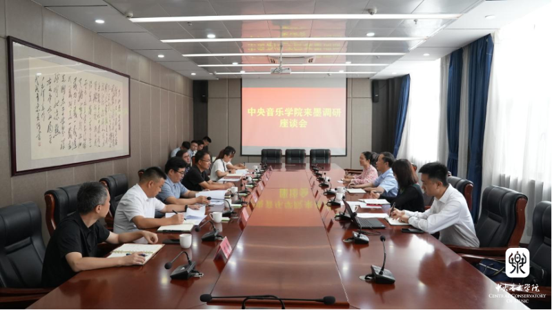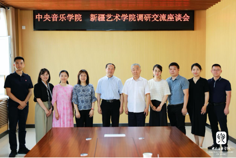 在新疆艺术学院,调研组分别来到新疆艺术学院音乐学院和新疆艺术学院附属中等艺术学校,实地了解师资情况和教学设施,并与新疆艺术学院党委书记章立新,新疆艺术学院音乐学院副院长雷嘉彦、党委副书记鲍结丹等同志,就两校历史沿革、近期重点工作、下一步合作方向等方面交流座谈。