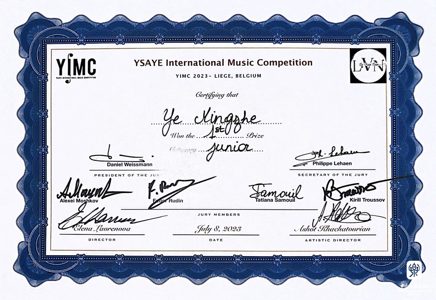 伊萨依国际音乐比赛(Ysaÿe International Music Competition)以比利时小提琴家、作曲家Eugène Ysaÿe命名,由比利时列日市政府主办、列日皇家音乐学院(Eugène Ysaÿe母校)承办,旨在为来自世界各地优秀的青少年演奏家们提供一个高水平的赛事环境。2023年第五届伊萨依国际音乐比赛评委会主席为比利时列日皇家交响乐团经理Daniel Weissmann。
