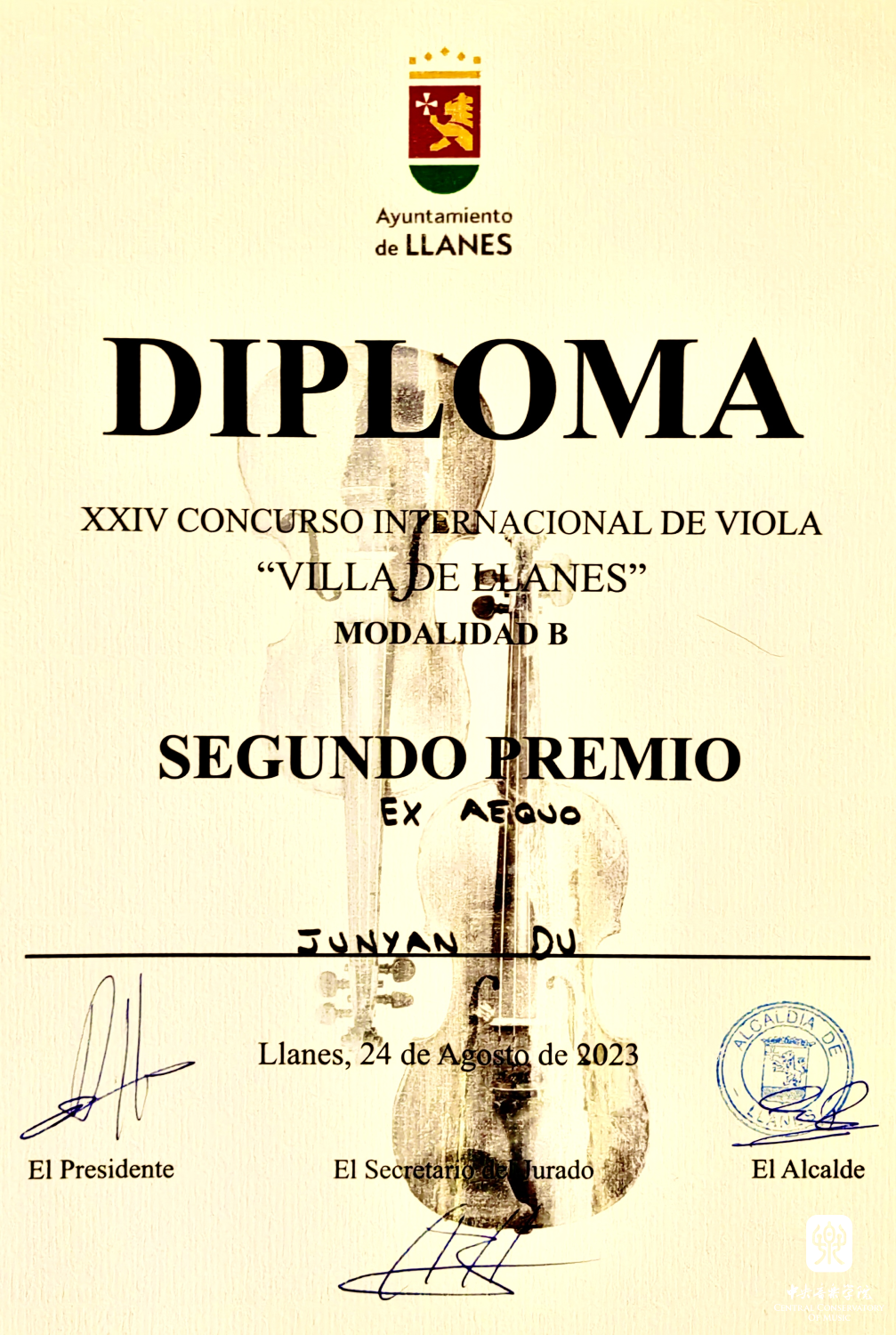 2023年西班牙Llanes 第24届中提琴国际比赛少年组第二名;