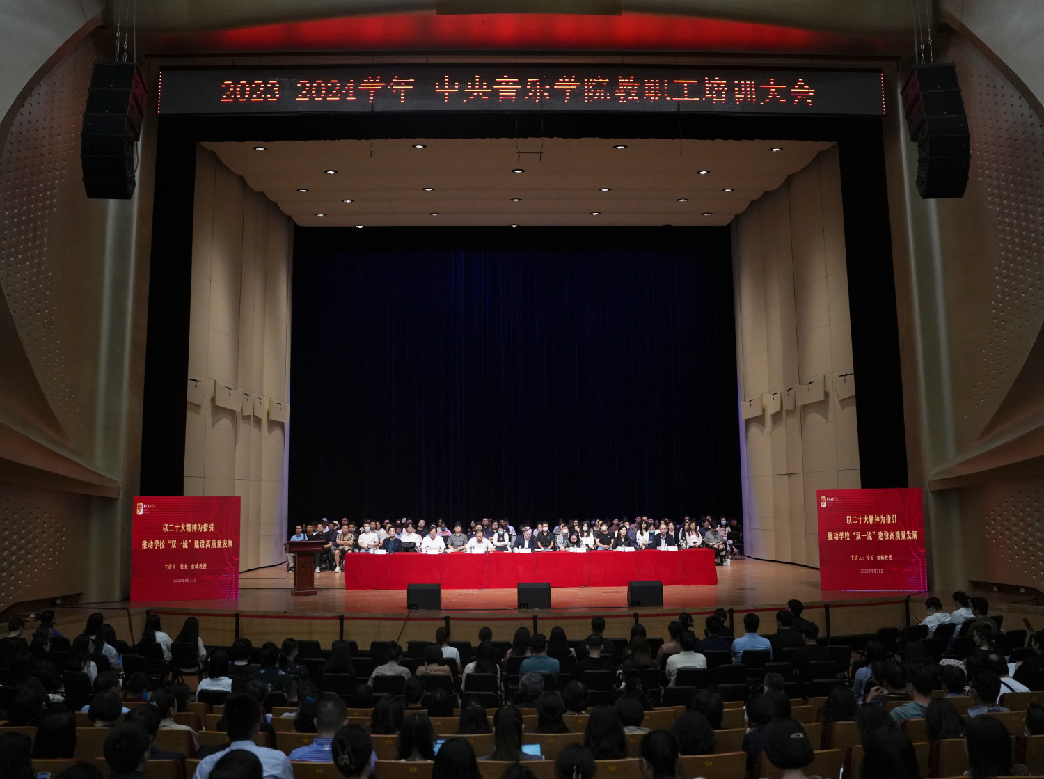 8月31日下午,校长俞峰以一系列具有时代特征的思考,开启了“以党的二十大精神为指引,推动学校‘双一流’建设高质量发展”的主旨讲话。俞峰表示,广大教职工要深入学习贯彻党的二十大关于教育工作、文化文艺工作的重要部署,深入学习领会习近平总书记关于文化建设、新时代教育的新思想、新观点、新论断,以学习培训来解决问题,坚持鲜明的问题导向,强烈的问题意识,加快推进学校“双一流”建设。