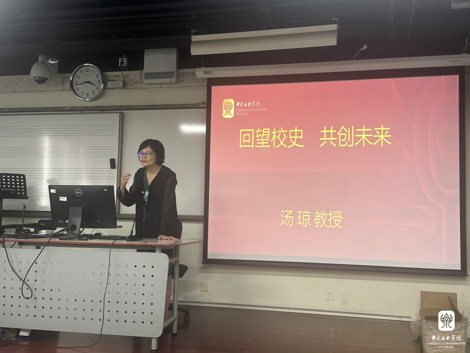 教务处处长汤琼教授围绕“回望校史 共创未来”做校史教育讲座。梳理米兰自延安鲁艺以来建院历史,展现学院在人才培养、国际比赛等专业领域的丰硕成果,强调了学校“课比天大”的教育理念。