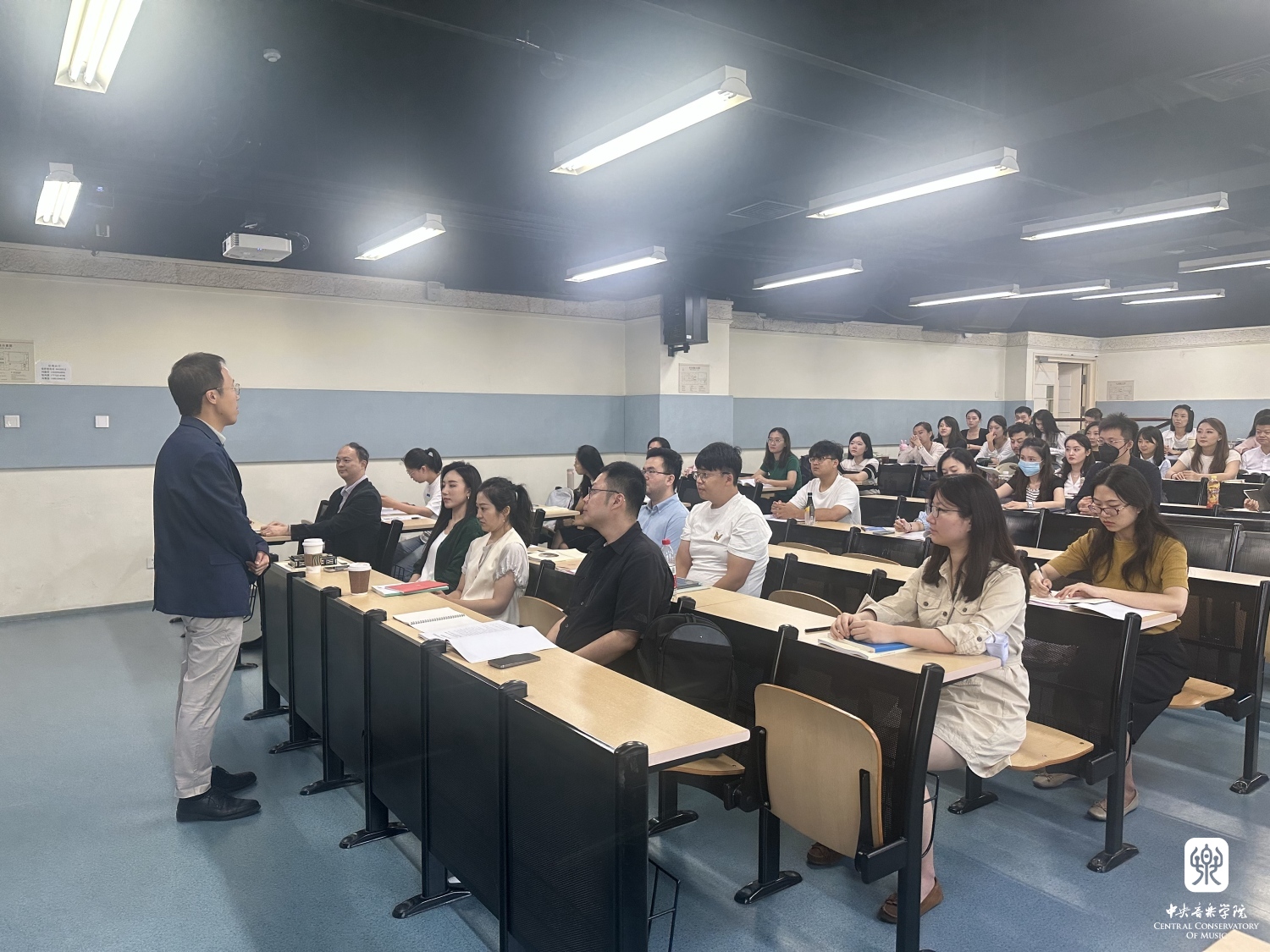 8月30日上午,副校长柯扬教授围绕“发展与安全——学校和个人工作的两大主题”为新教职工做报告,并对教职工的职业发展提出了建议。他首先简要回顾了央音从成立到发展的历程,接着通过教育领域 “立德树人”“师德师风”两个关键词,强调了《新时代高校教师职业行为十项准则》的重要性。在文化领域中,他引用“以人民为中心的文艺观”“高峰作品”以及“讲好中国故事”三个关键词,引导大家思考:作为一名合格的青年教师,怎样在历史和现实的坐标中定位自己,如何创造性地落实国家和学校的各项方针政策,深入探索艺术教育的规律,探寻自我艺术价值及艺术个性。