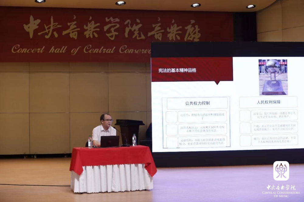 随后,中国政法大学副教授、硕士生导师张劲老师以“宪法的中国品格及其生活意义”为题,为新生们展开“学宪法 讲宪法”主题教育,以生动案例展示宪法的重要意义,教育同学们关心宪法、热爱宪法,做学法尊法守法用法好公民。