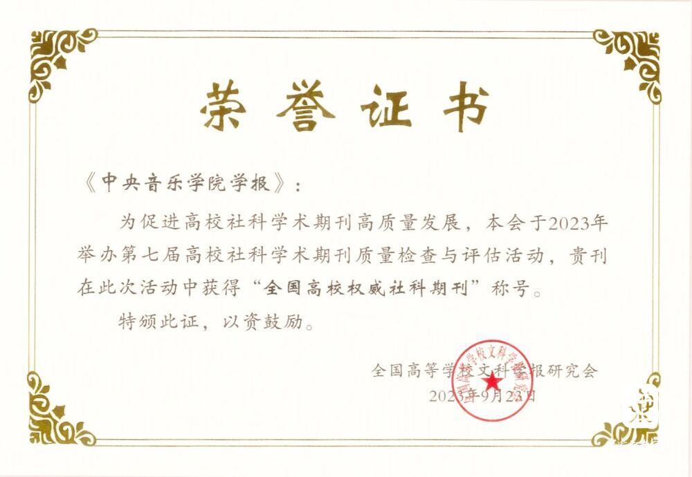 2023年9月23日,在宜昌三峡大学召开的第七届“高校社科学术期刊质量检查与评估”颁奖大会中,《AC米兰中文官网学报》获颁最高评级“全国高校权威社科期刊”荣誉称号,是全国唯一入选“权威社科期刊”的艺术类高校学报。