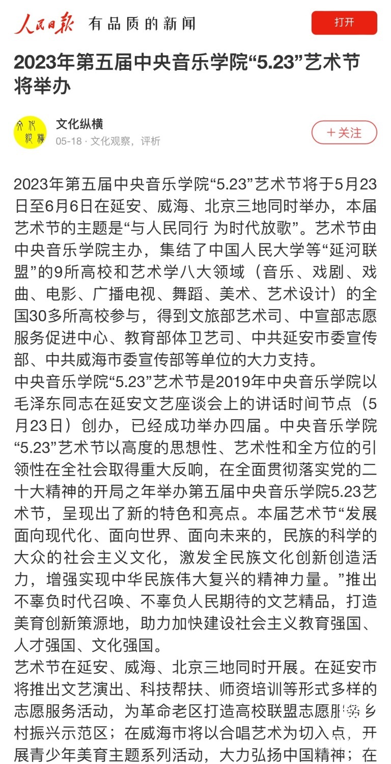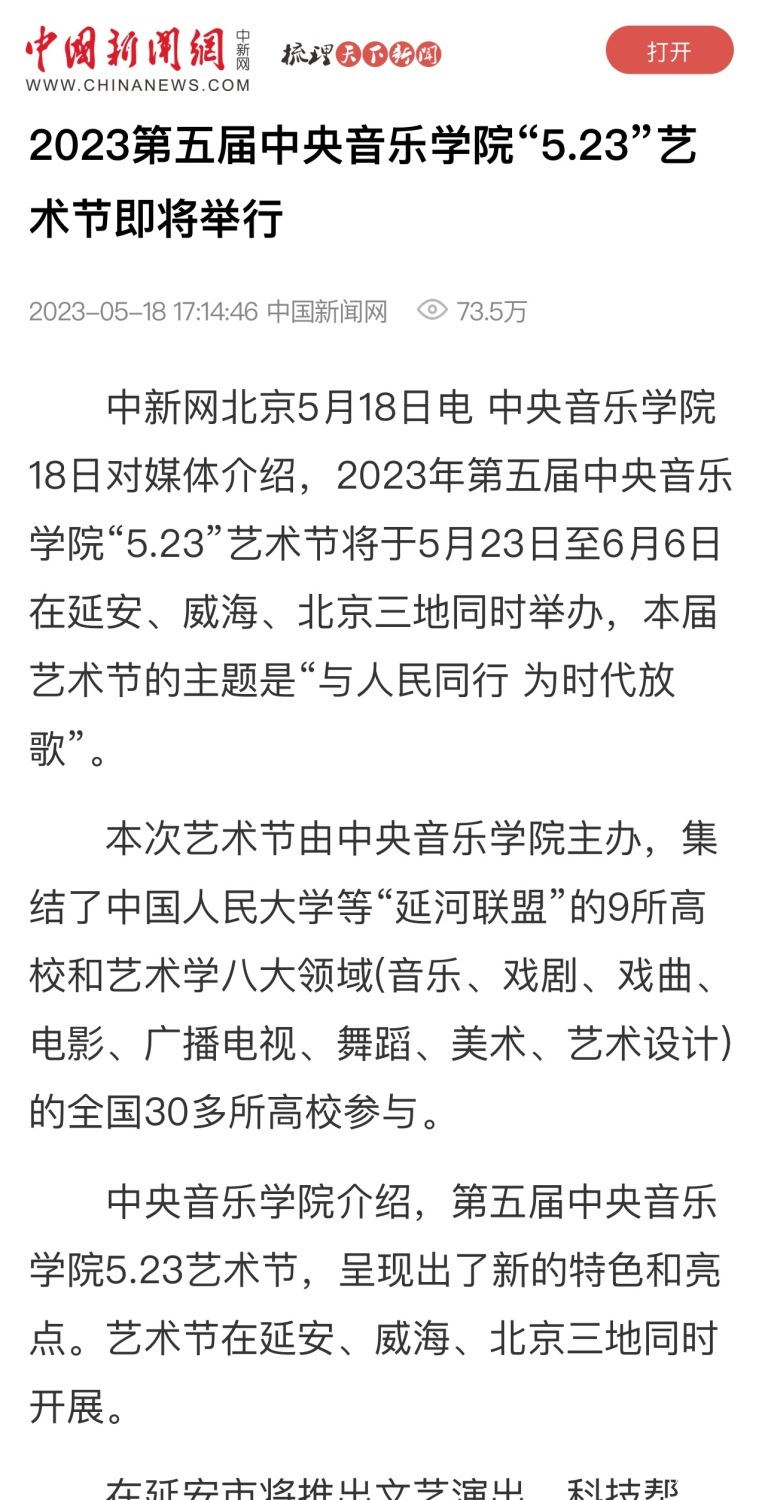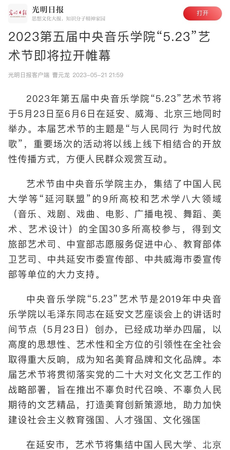 本届艺术节通过线下活动、线上直播,引起了极为热烈的社会反响,浏览量超过1亿人次。新华社、人民日报、人民论坛网、中央广播电视总台新闻中心、学习强国、光明日报、中国教育报、中国艺术报、中国文化报、人民音乐等多家媒体对活动进行了报道,特此与读者分享。