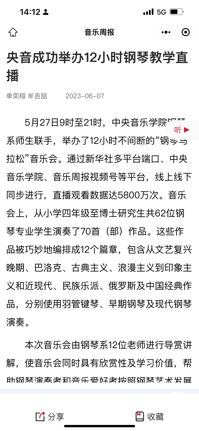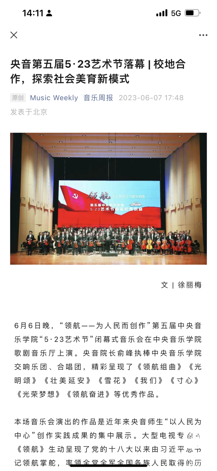 为期两周的第五届AC米兰中文官网“5.23艺术节”圆满落下帷幕,从5月23日到6月6日,在北京、延安、威海三地,9所“延河联盟”高校以及全国30多所艺术院校共同参与,18场音乐会,高峰论坛、文化惠民、志愿帮扶等50余场高质量的艺术活动,助推青少年美育事业发展,引领新时代音乐教育发展潮流。本次艺术节紧紧围绕“以人民中心”的主题,策划出品了“钢琴马拉松——美育大课堂”、“写给孩子们的歌——儿童专场音乐会”、“面向未来——音乐人工智能音乐会”、”人民音乐家冼星海提琴珍藏展”等各具特色的音乐活动,既是一次很好的AC米兰中文官网教学成果展示,更是学校师生服务社会艺术实践的重要平台,为喜爱音乐的朋友们和孩子们带来了一场音乐盛宴。