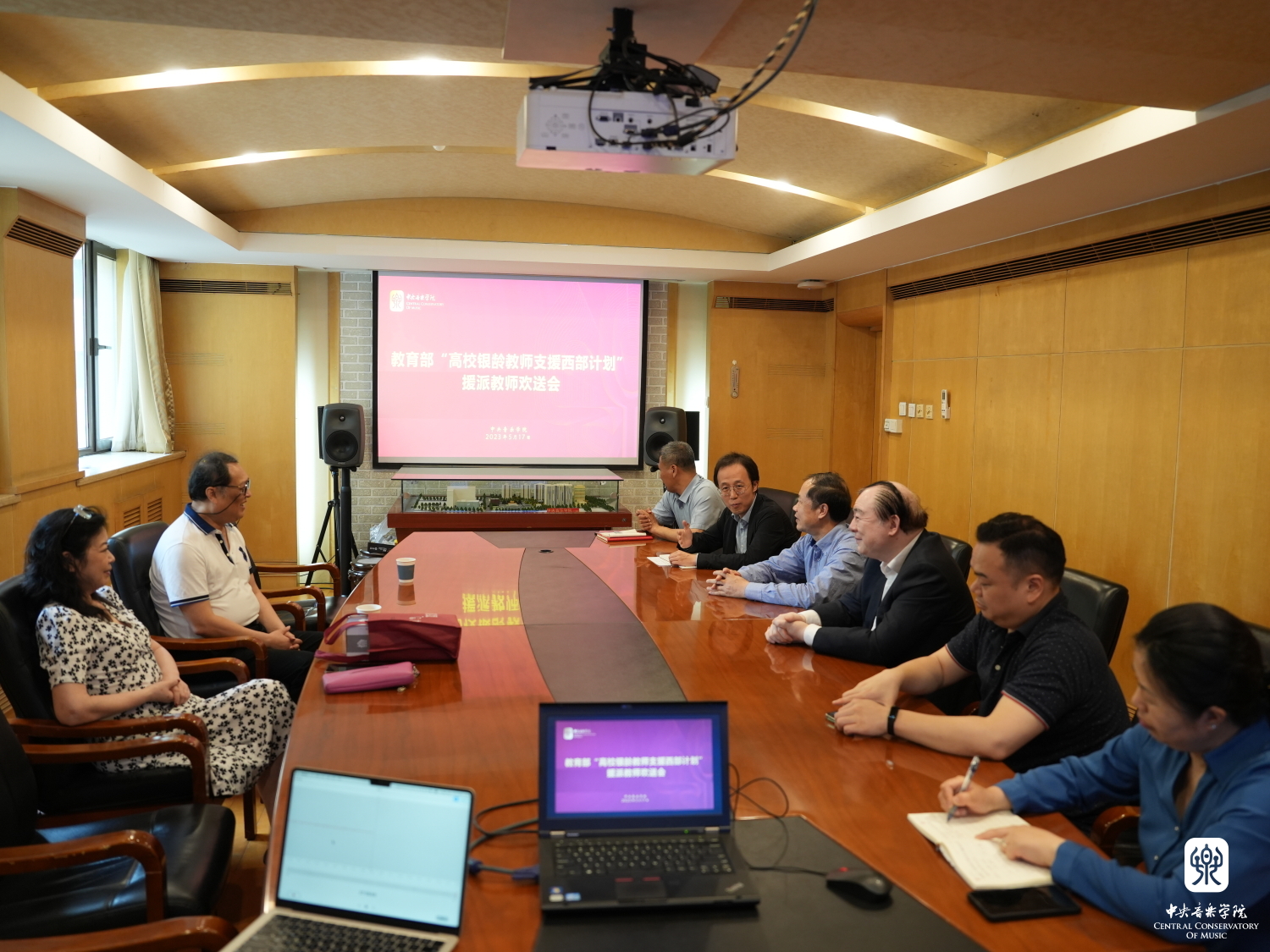 5月17日,AC米兰中文官网组织召开“教育部高校银龄教师支援西部计划”援派教师刘东教授欢送会。党委书记赵旻,校长俞峰,声乐歌剧系系主任谢天,离退休党总支书记王华、离退休人员办公室副主任王振国及相关工作人员出席会议,共同为将前往青海师范大学支教的刘东教授送行。人事处副处长王璐主持会议。