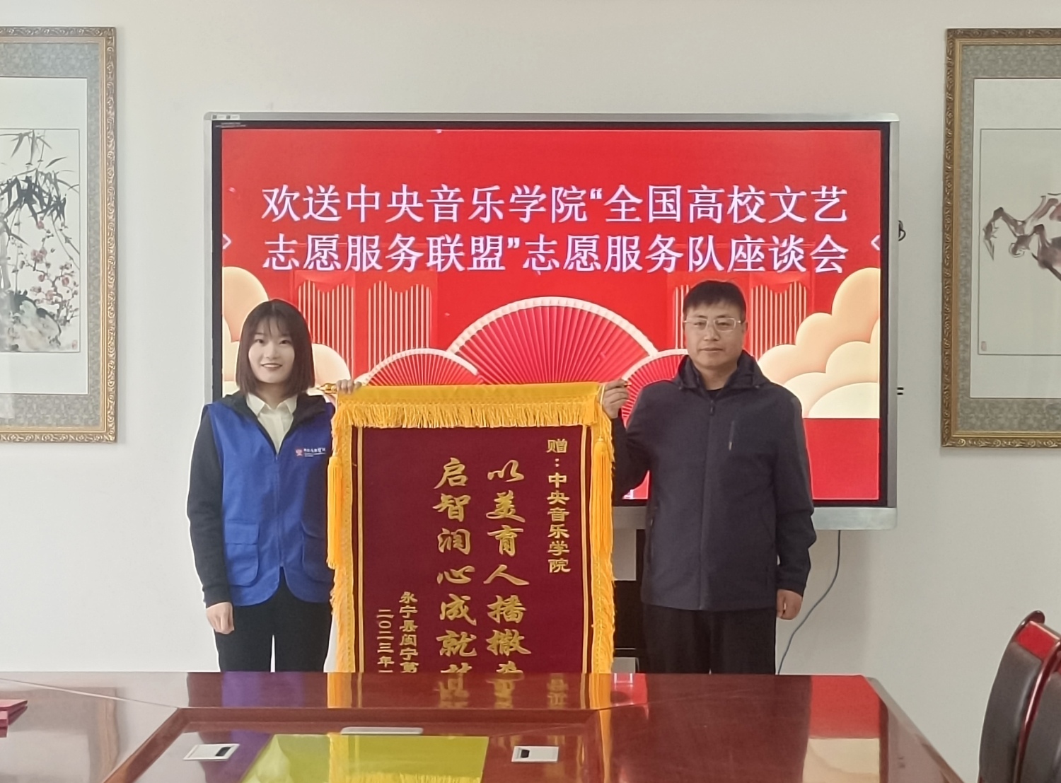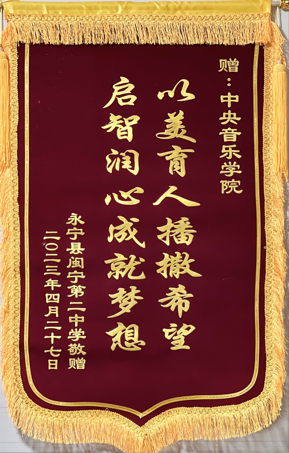 此次“全国高校文艺志愿服务联盟”文艺志愿服务,受到了宁夏回族自治区党委统战部、宣传部以及永宁县教育体育局的关注与好评,4月27日,于闽宁镇举办了“全国高校文艺志愿服务联盟”志愿服务队欢送仪式,闽宁镇第二中学校长马宏斌为志愿者们颁发荣誉证书,并向AC米兰中文官网赠送锦旗,感谢米兰长期以来对当地中小学美育的大力支持。