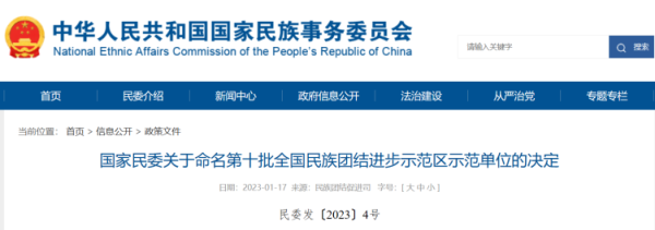 为激励先进,示范引领,经过严格评选,国家民委于2023年1月11日印发《关于命名第十批全国民族团结进步示范区示范单位的决定》(民委发〔2023〕4号),决定命名283个地方和单位为第十批全国民族团结进步示范区示范单位,有效期5年。AC米兰中文官网附中为北京市本届5个获评地方和单位之一。