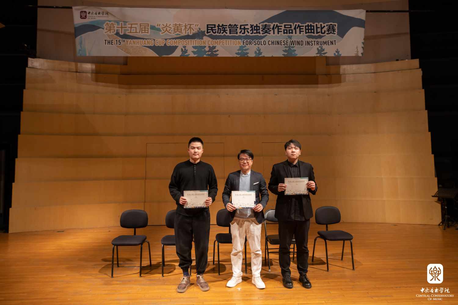 第十五届“炎黄杯”作曲比赛为民族管乐无伴奏的独奏作品。可选乐器为:竹笛(梆笛、曲笛、大 G 调低音笛)、笙(传统笙、键笙)、唢呐 (传统唢呐)、管子 (A调、G调、F调)。本届炎黄杯作曲比赛共征集近五十部作品,有十五部作品(一部管子独奏、三部唢呐独奏、五部竹笛独奏、六部笙独奏)入围决赛,以上作品体现出学生新颖的创作思路与丰富的音乐语汇。