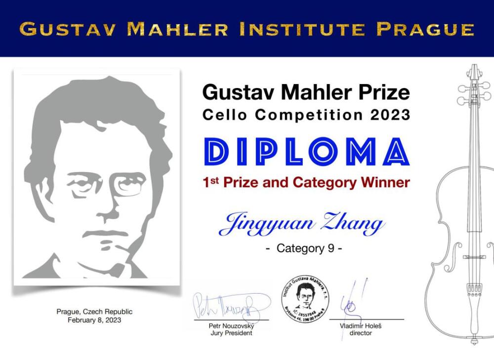 2023年古斯塔夫·马勒国际大提琴比赛第九组第一名并获得组别冠军。