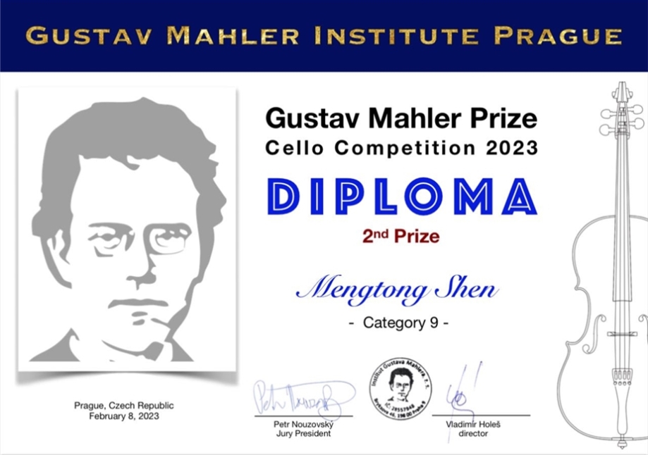 2023年古斯塔夫·马勒国际大提琴比赛第九组二等奖。