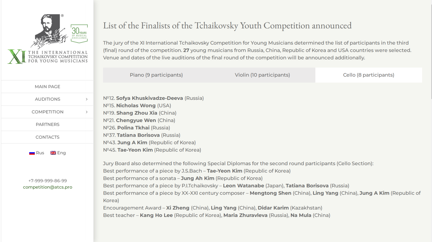 超过8万名现场观众和超过1500万名在线观众了解了参与者的演绎,听取了权威音乐家和评论家的意见。此外,通过设立最佳教师特别奖、将讲座、大师班和展览纳入竞赛计划,再次确认了竞赛的教育性质。